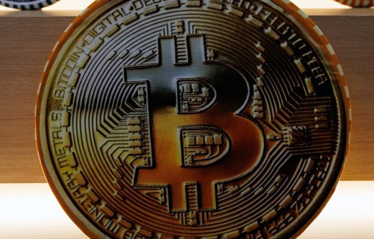 A Bitcoin logo on a smartphone.