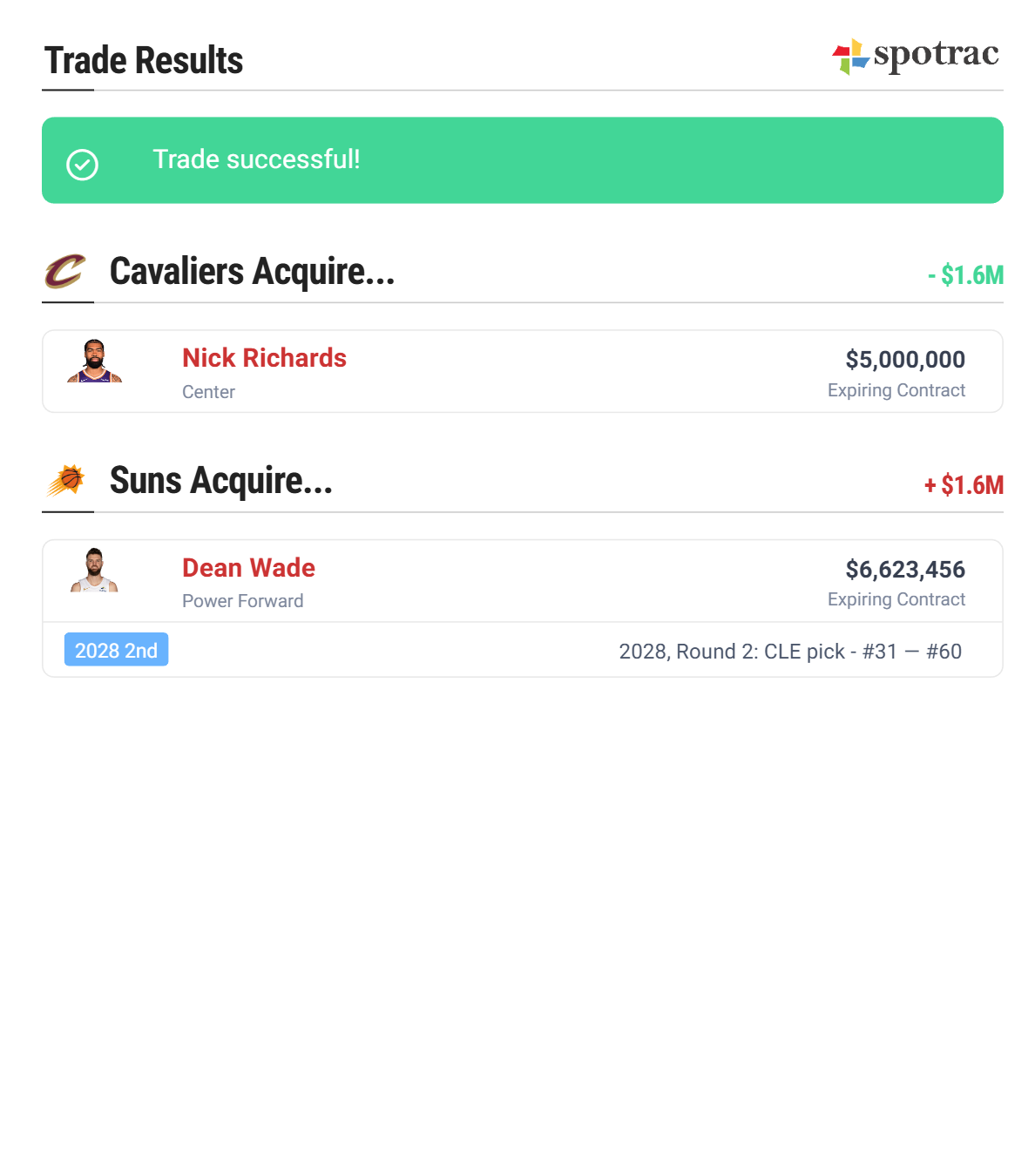 This trade is out of left field, but hear me out: the Suns get Dean Wade and a 2028 second-round Cavs pick for Nick Richards.