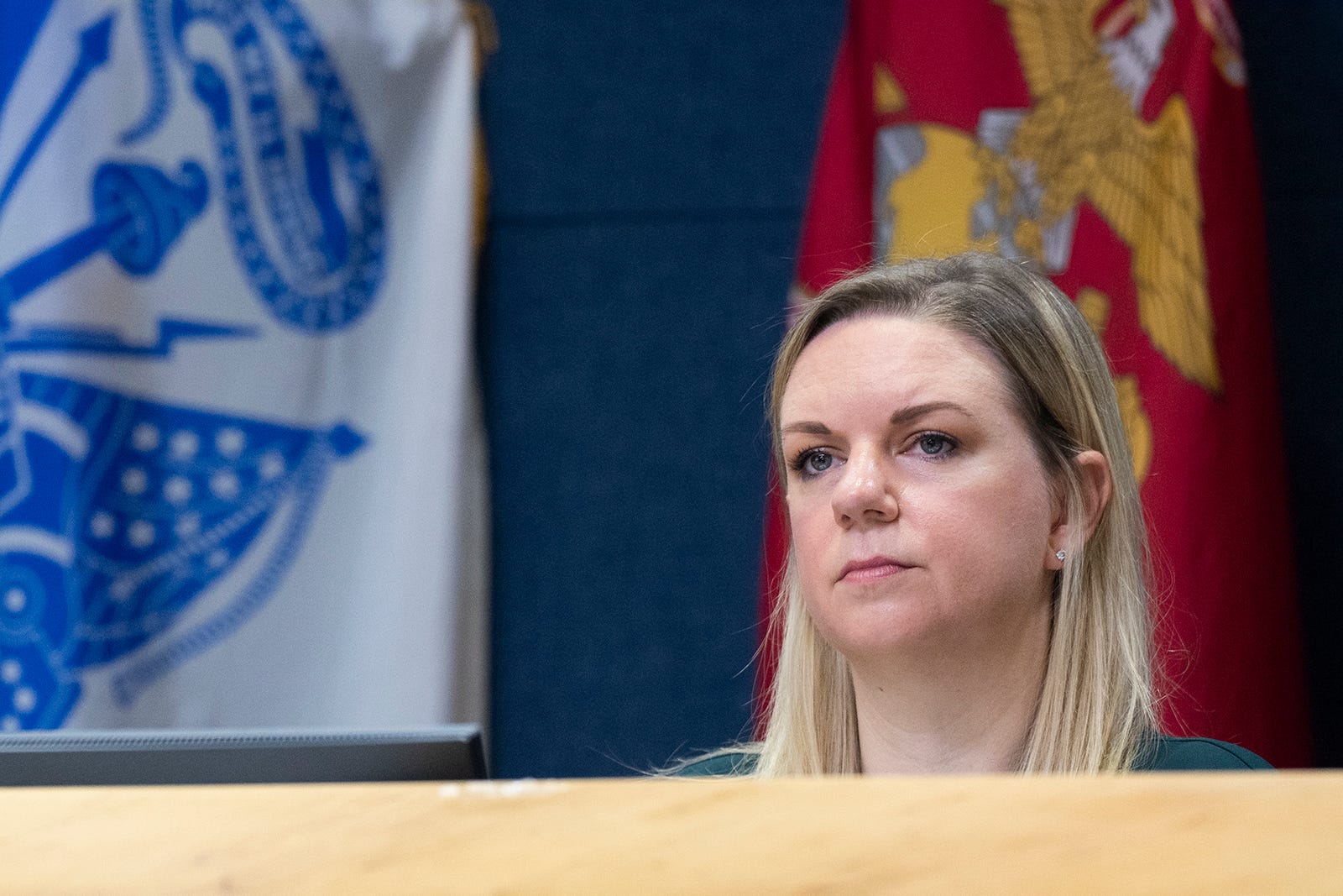 Austin City Council Member Paige Ellis listens to public testimony on Wednesday, Aug. 16, 2023 at City Hall. The District 8 representative, who is running for re-election this year, has previously faced scrutiny for campaign finance practices.