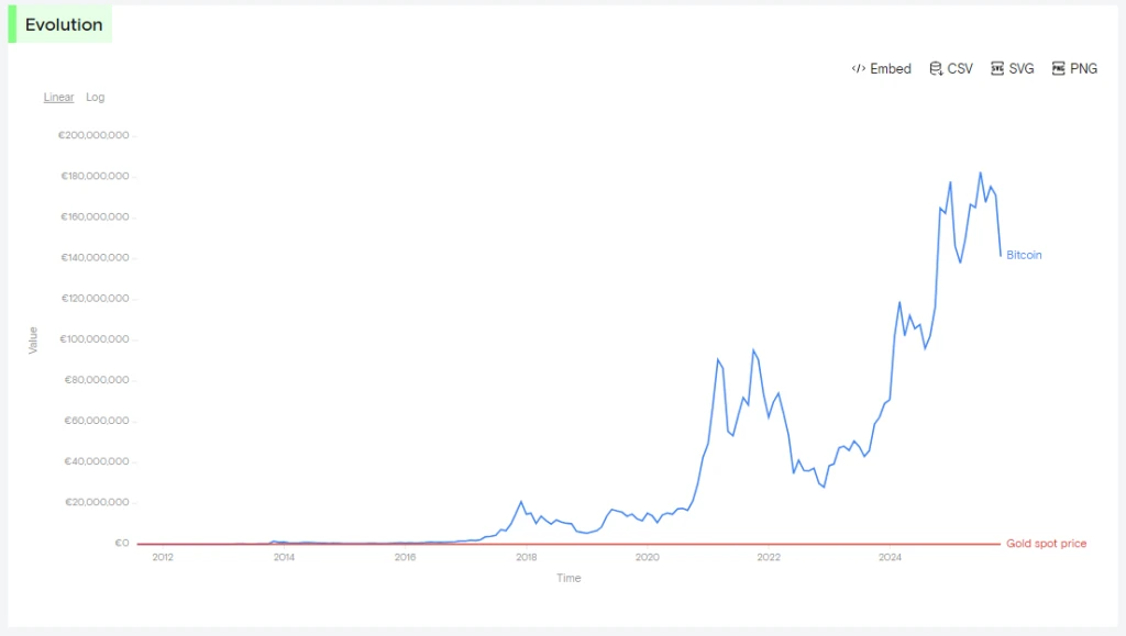On the weekly chart the picture adds weight to the signal. The weekly RSI for the BTC/GOLD pair has sunk to about 31.85 at press time. That level was last seen during the November 2022 sell-off tied to the FTX collapse, a point that marked a bottom in that cycle.