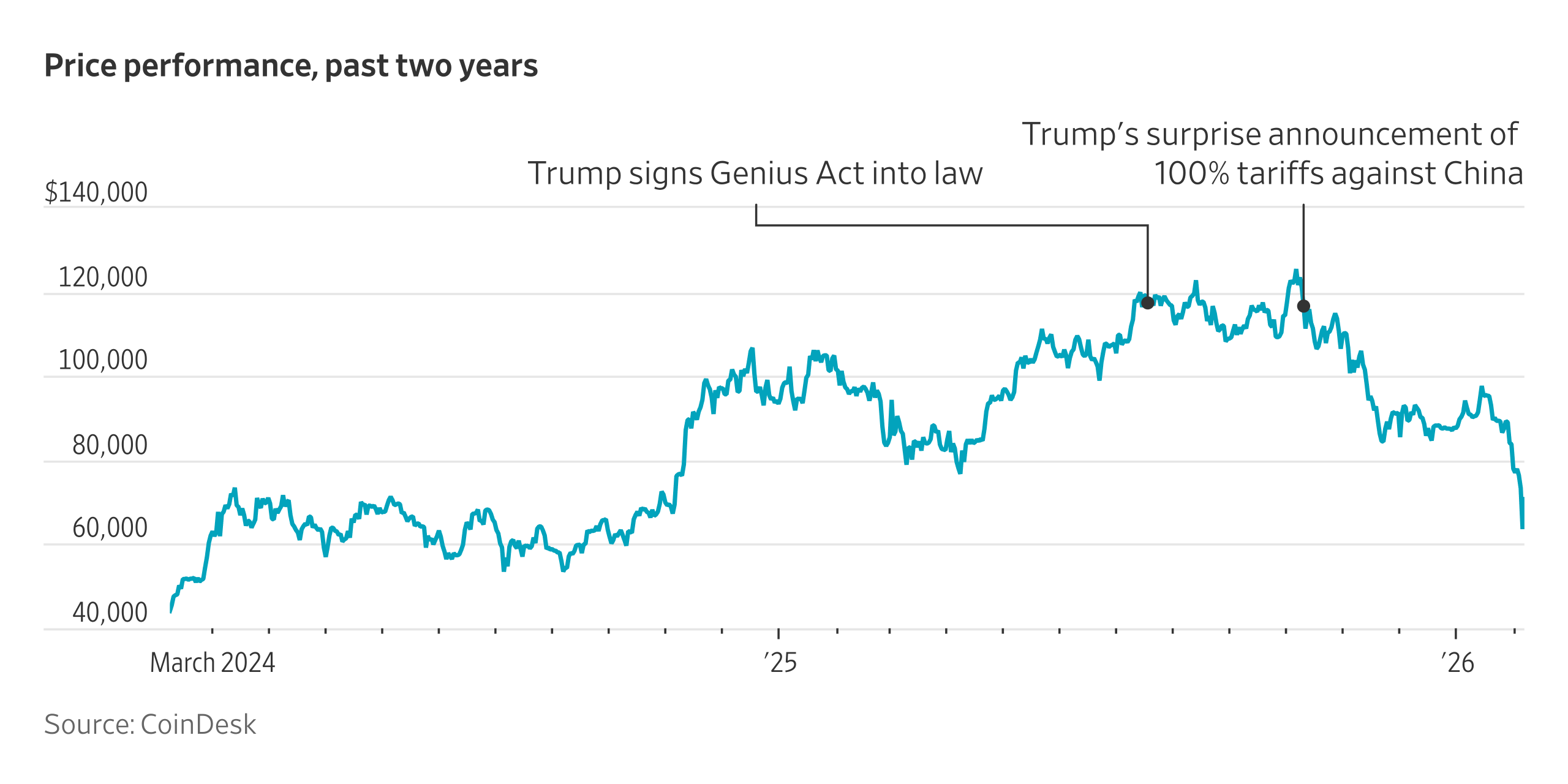 Bitcoin price nears $66,000, hitting lowest level since October 2024
