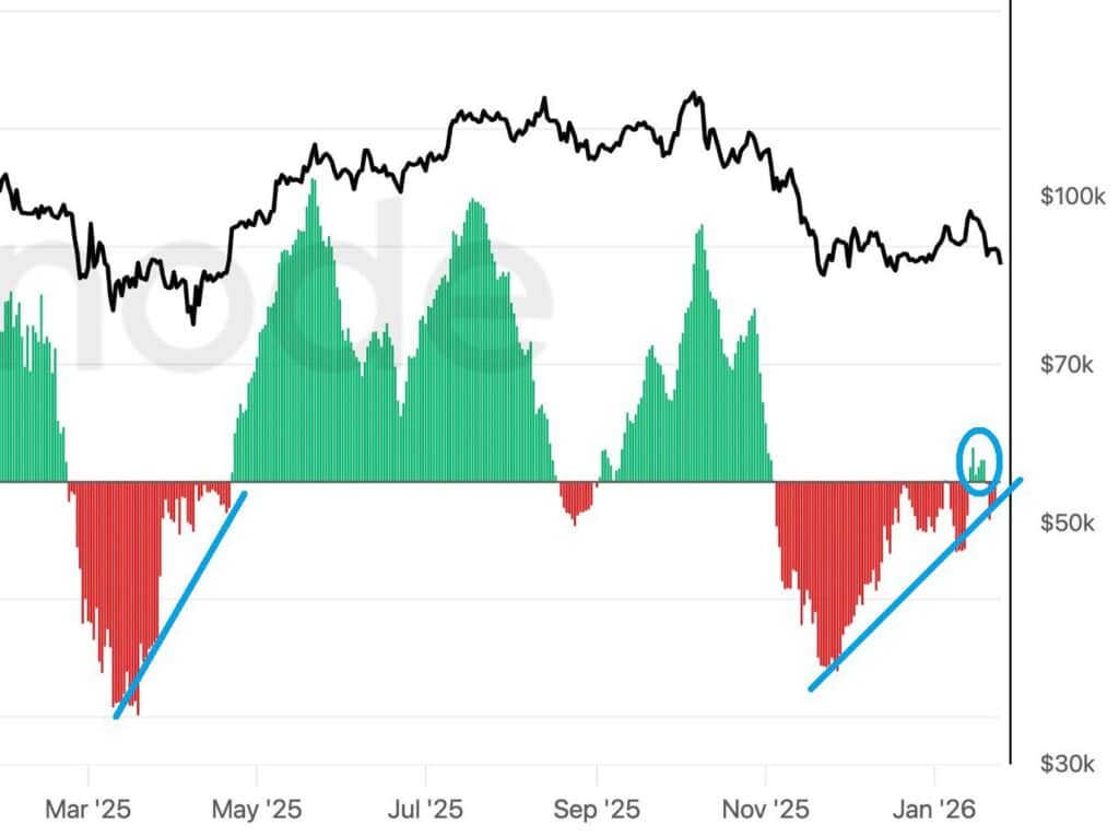 2. Shrinking GBTC discount. The Grayscale Bitcoin Trust once traded far below the value of its Bitcoin. That gap closing signals confidence that conversion to an ETF is closer. When discounts close, fear usually fades.