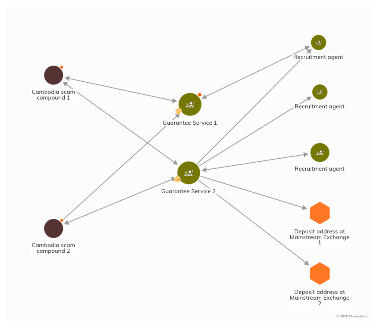 This surge in cryptocurrency flows to suspected human trafficking services is not happening in isolation, but is closely aligned with the growth of Southeast Asia–based scam compounds, online casinos and gambling sites, and Chinese-language money laundering (CMLN) and guarantee networks operating largely via Telegram, all of which form a rapidly expanding local illicit ecosystem with global reach and impact. Unlike cash transactions that leave no trace, the transparency of blockchain technology provides unprecedented visibility into these operations, creating unique opportunities for detection and disruption that would be impossible with traditional payment methods.
