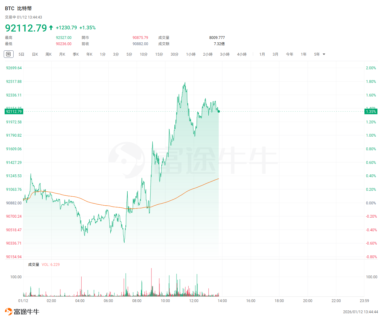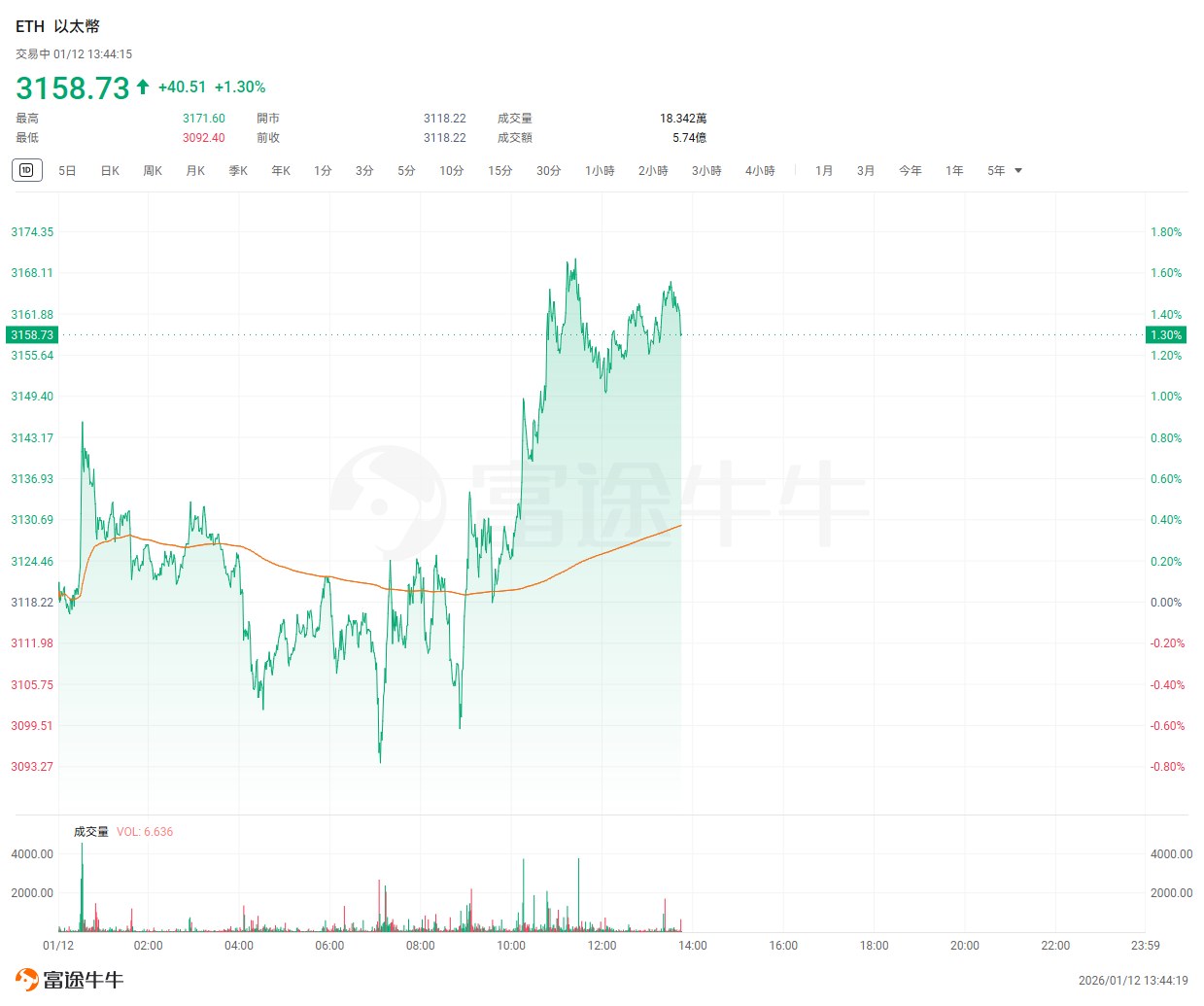 January 12th report: The cryptocurrency market is on an upward trend. As of press time, $Bitcoin (BTC.CC)$ increased by 1.35%, trading at $92,112.79; $Ethereum (ETH.CC)$ rose by 1.30%, trading at $3,158.73.