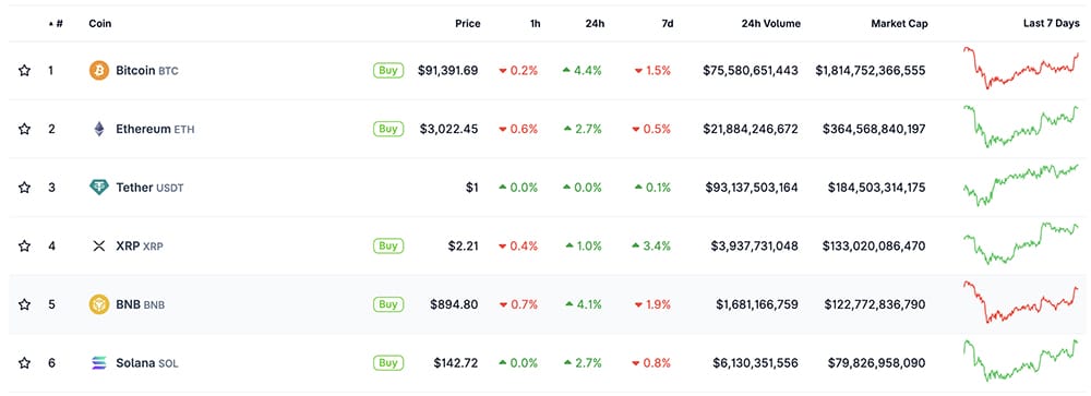 With ETH USD reclaiming $3,000, altcoins showed early signs of reversal. SOL, BNB, and other oversold names joined the rally as rotation away from Bitcoin strengthened alts’ dominance.