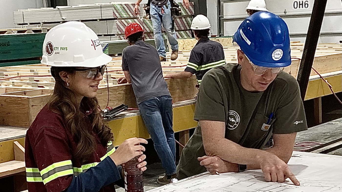 Inside a 32,000 square foot modular home factory filled with the sounds of construction, high school student June Baker and her teacher Darrin Rassmusen huddled over blueprints trying to figure out what went wrong with a drywall installation. Turns out it was confusion over two panels both labelled A.