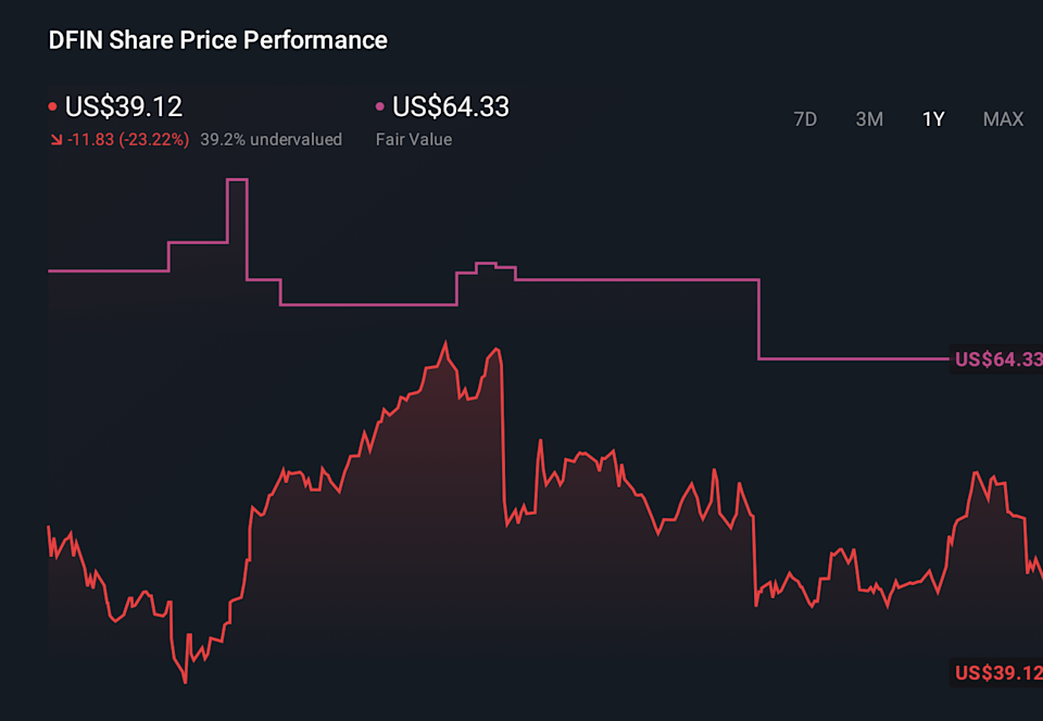Uncover how Donnelley Financial Solutions’ forecasts yield a $64.33 fair value, a 64% upside to its current price.