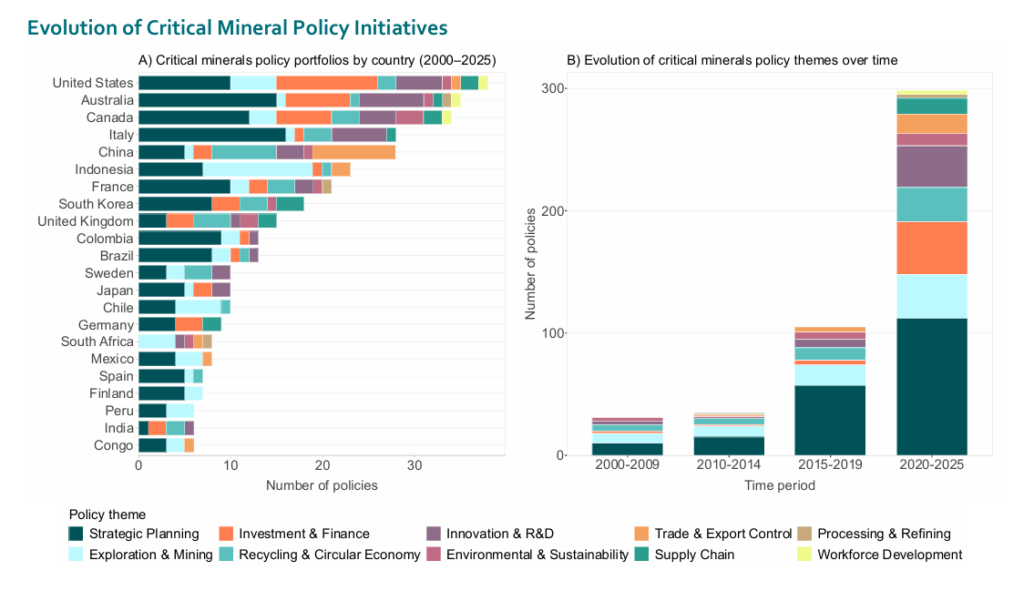 At the same time, government responses are accelerating just as quickly. According to IEF estimates, the number of critical mineral policies issued since 2020 nearly doubled the combined total of the previous two decades, with countries increasingly turning to strategic planning, export controls and domestic processing mandates to shield supply chains.