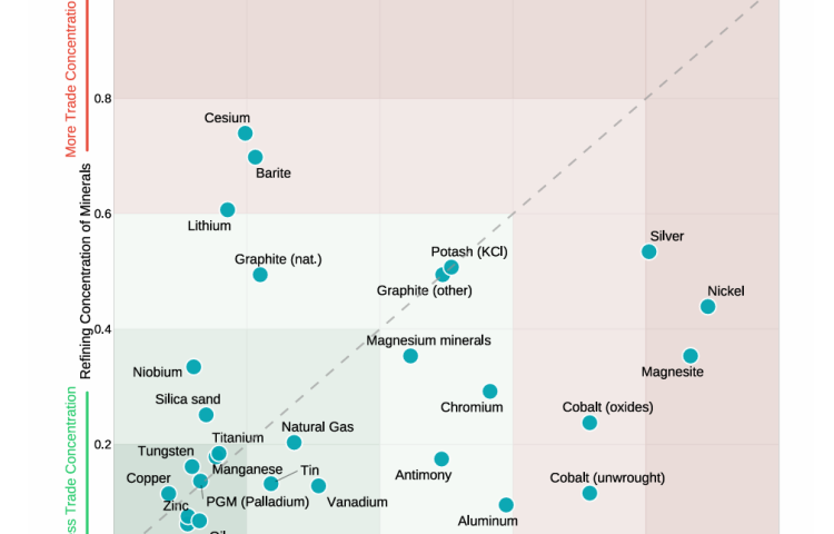Geographical concentration compounds the challenge: Indonesia accounts for more than half of global nickel supply, the Democratic Republic of the Congo produces roughly 70% of cobalt, and China controls more than 90% of rare earth refining capacity. Lithium mining remains dominated by Australia, Chile and China, which together accounted for more than three-quarters of global production in 2022.