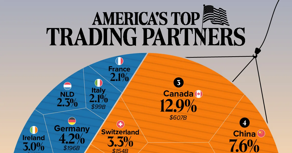 Mexico follows, with $731.2 billion in cross-border trade in 2025. After the U.S. announced tariffs on Mexican imports in February 2025, subsequent negotiations led to delays and partial exemptions.