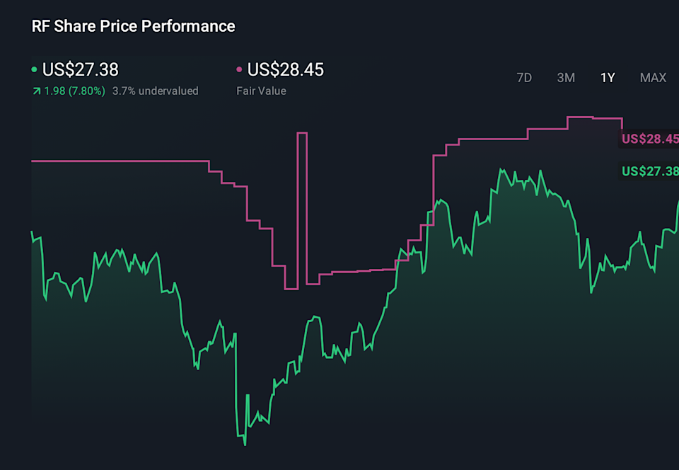 Knowing what a company is worth starts with understanding its story. Check out one of the top narratives in the Simply Wall St Community for Regions Financial to help decide what it’s worth to you.