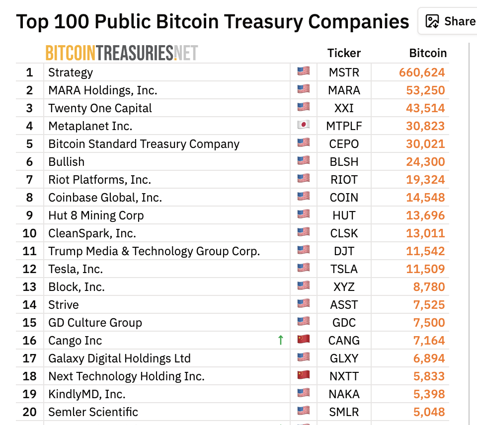 Top-20 Bitcoin holders | Source: bitcointreasuries.net