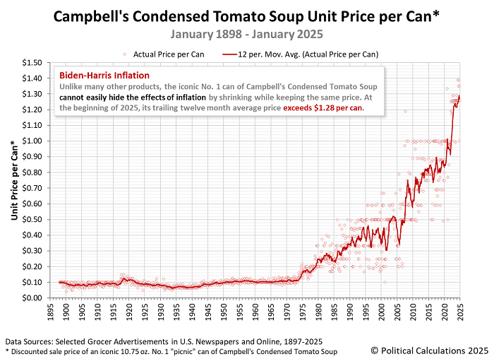 One of the more straightforward ways to show the debasement is via the price of Campbell’s tomato soup. Rather than relying on a complex set of estimates and substitutions, it’s just a history record of what the same can of soup cost over time. The pivot point is pretty clear: