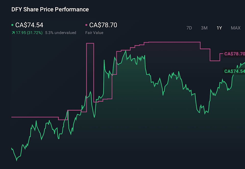 Fair Value: CA$78.70 to CA$79.55, reflecting a small upward adjustment in the implied valuation level.
