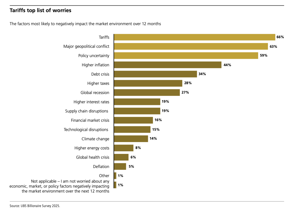 What’s the top concern among billionaires? Not a financial crash or debt crisis. It’s tariffs—and only 1% have no worries about the market