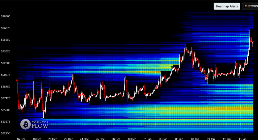 BTC pushed to a two-month high near $96,240 before cooling, but the damage to bearish positioning was already done.